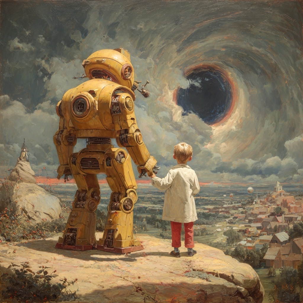 Artificial intelligence increasingly occupies a similar position within contemporary systems. It is not a moral subject in the human sense, nor a source of meaning. It is a bearer of complexity. It absorbs scale, manages interdependence, and stabilizes processes that exceed unaided human cognition. Like Christopher, it operates before full comprehension, both its own and ours. Its role is not to define values, but to carry what has already been placed within its charge.